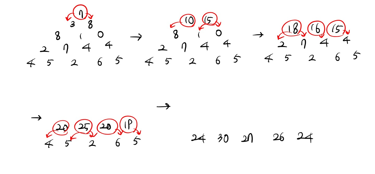 [[7], [3, 8], [8, 1, 0], [2, 7, 4, 4], [4, 5, 2, 6, 5]] 30